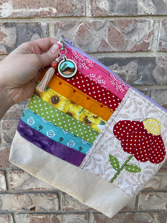 Embroidered Heart on Rainbow Fabric
