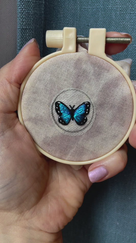 Blue Morpho Butterfly Embroidered Necklace